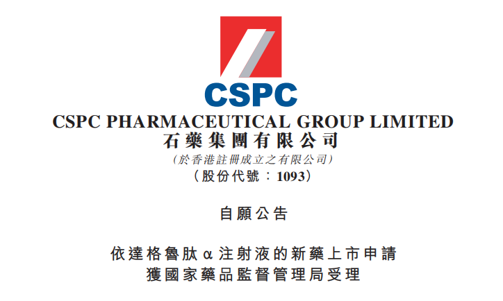 石藥集團(tuán)依達(dá)格魯肽α注射液的新藥上市申請獲國家藥品監(jiān)督管理局受理