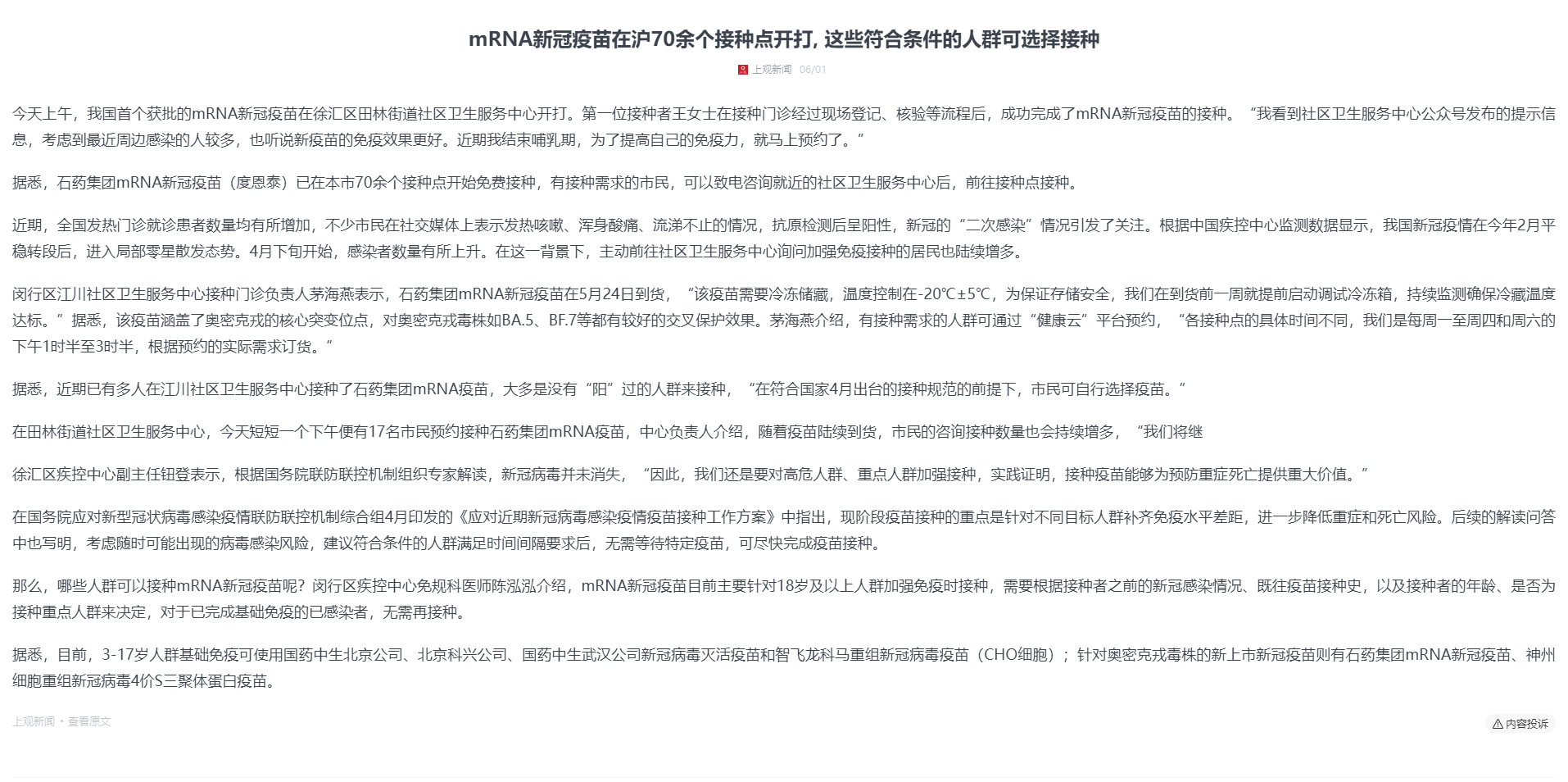 mRNA新冠疫苗在滬70余個(gè)接種點(diǎn)開打, 這些符合條件的人群可選擇接種