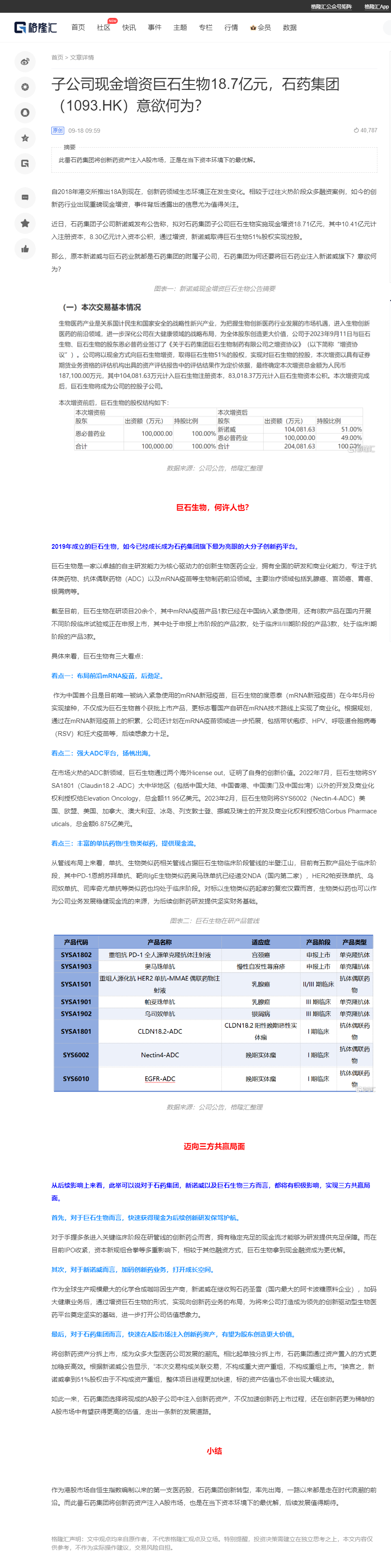 子公司現(xiàn)金增資巨石生物18.7億元,石藥集團(tuán)(1093.HK)意欲何為?