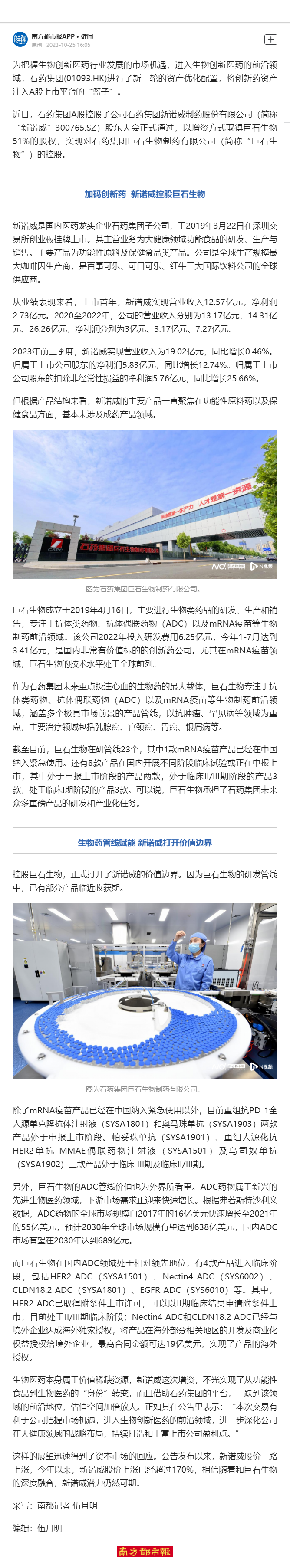 近日,石藥集團A股控股子公司石藥集團新諾威制藥股份有限公司(簡稱“新諾威”300765.SZ)股東大會正式通過,以增資方式取得巨石生物51%的股權(quán),實現(xiàn)對石藥集團巨石生物制藥有限公司(簡稱“巨石生物”)的控股。