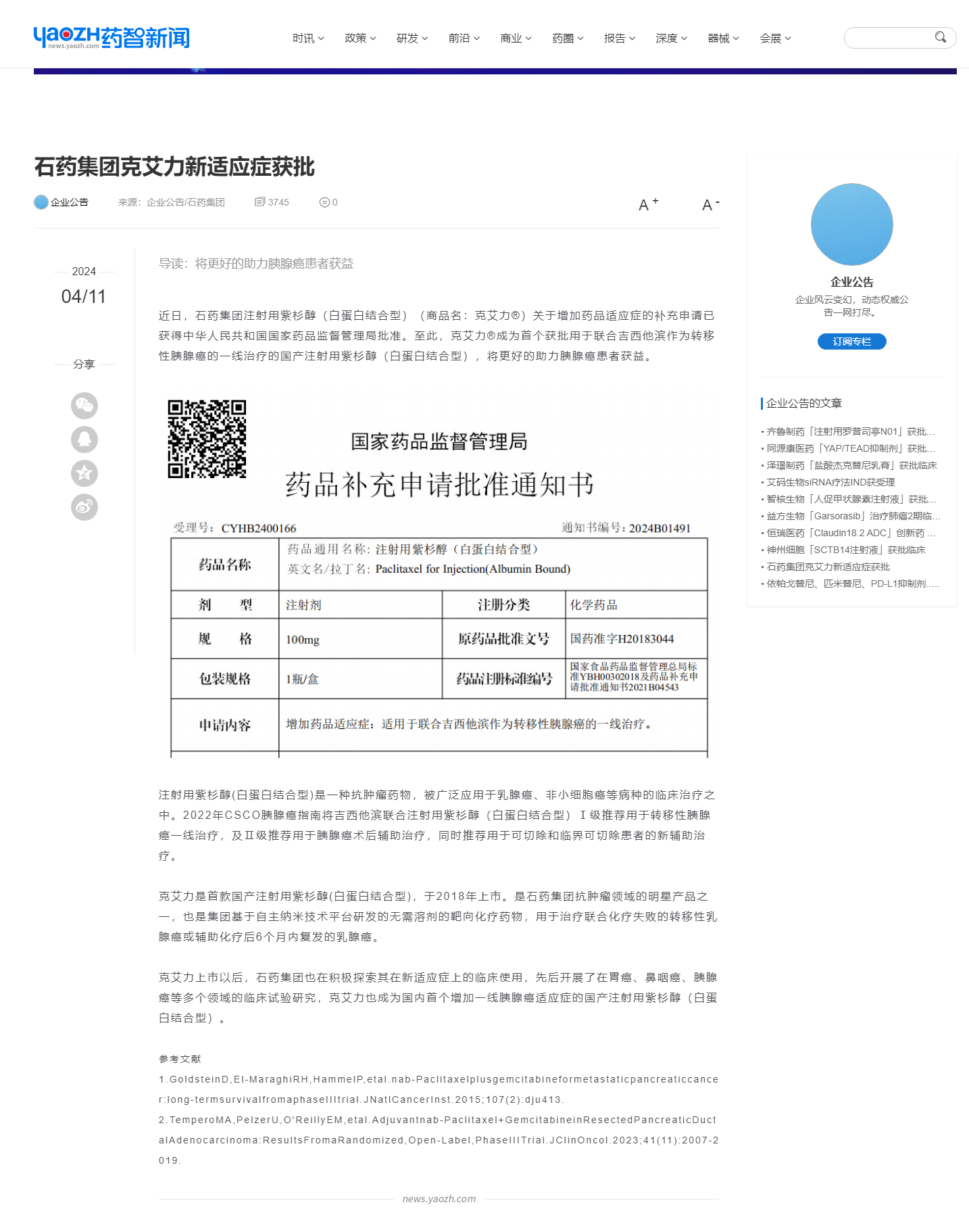 石藥集團克艾力新適應癥獲批