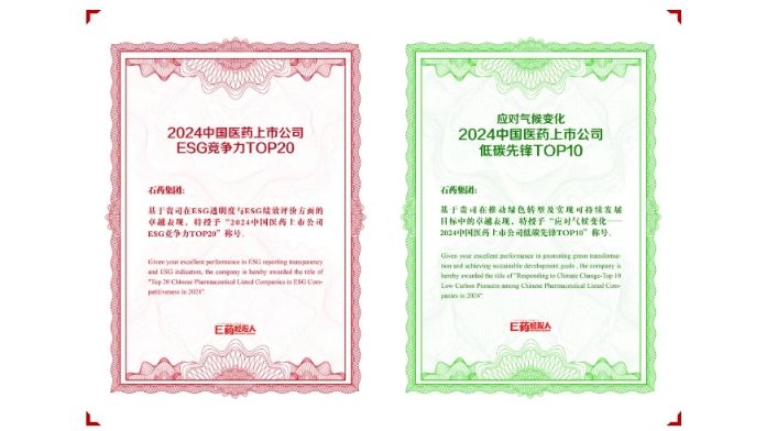 2024年11月14日,由中國醫(yī)藥企業(yè)管理協(xié)會(huì)、中國醫(yī)藥生物技術(shù)協(xié)會(huì)、四川省醫(yī)藥行業(yè)協(xié)會(huì)主辦,E藥經(jīng)理人承辦的2024第16屆中國醫(yī)藥企業(yè)家科學(xué)家投資家大會(huì)(CHSESI,簡稱“啟思會(huì)”)在成都舉行。2024年度中國醫(yī)藥上市公司ESG競爭力系列榜單在會(huì)上正式揭曉,石藥集團(tuán)憑借在ESG透明度與ESG績效評(píng)價(jià)方面的卓越表現(xiàn),被授予“2024中國醫(yī)藥上市公司ESG競爭力TOP20”榮譽(yù)稱號(hào);并基于公司在推動(dòng)綠色轉(zhuǎn)型及實(shí)現(xiàn)可持續(xù)發(fā)展目標(biāo)中的卓越表現(xiàn),被授予“應(yīng)對(duì)氣候變化2024中國醫(yī)藥上市公司低碳先鋒TOP10”。這兩項(xiàng)榮譽(yù)肯定了集團(tuán)在環(huán)境、社會(huì)和治理(ESG)方面付出的努力和顯著成效,企業(yè)價(jià)值得到進(jìn)一步的印證。